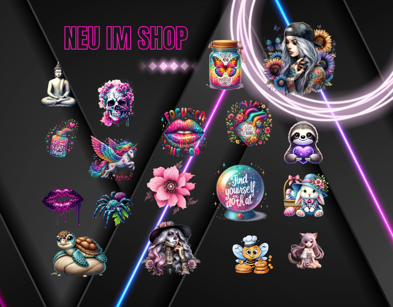Hier findest du unsere neuesten Premium Bügelbilder, hochwertigen UV-Sticker, bedruckten Tassen und stylische Bekleidung! 🎉 Wir erweitern unser Sortiment regelmäßig mit neuen, modernen Designs, die deine DIY-Projekte und Outfits auf das nächste Level bringen.